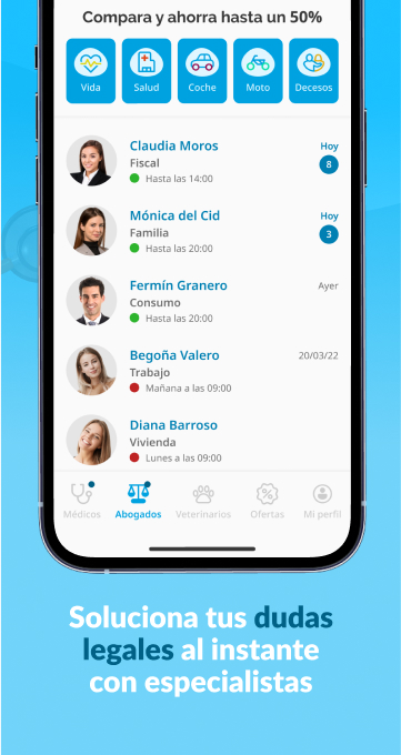 Poder contactar de forma ràpida i immediata amb professionals davant de qualsevol consulta és vital per a la teva tranquil·litat i la dels teus. Per això, iSalud.com ofereix l’exclusiu servei de Xat Mèdic, Legal i Veterinari.